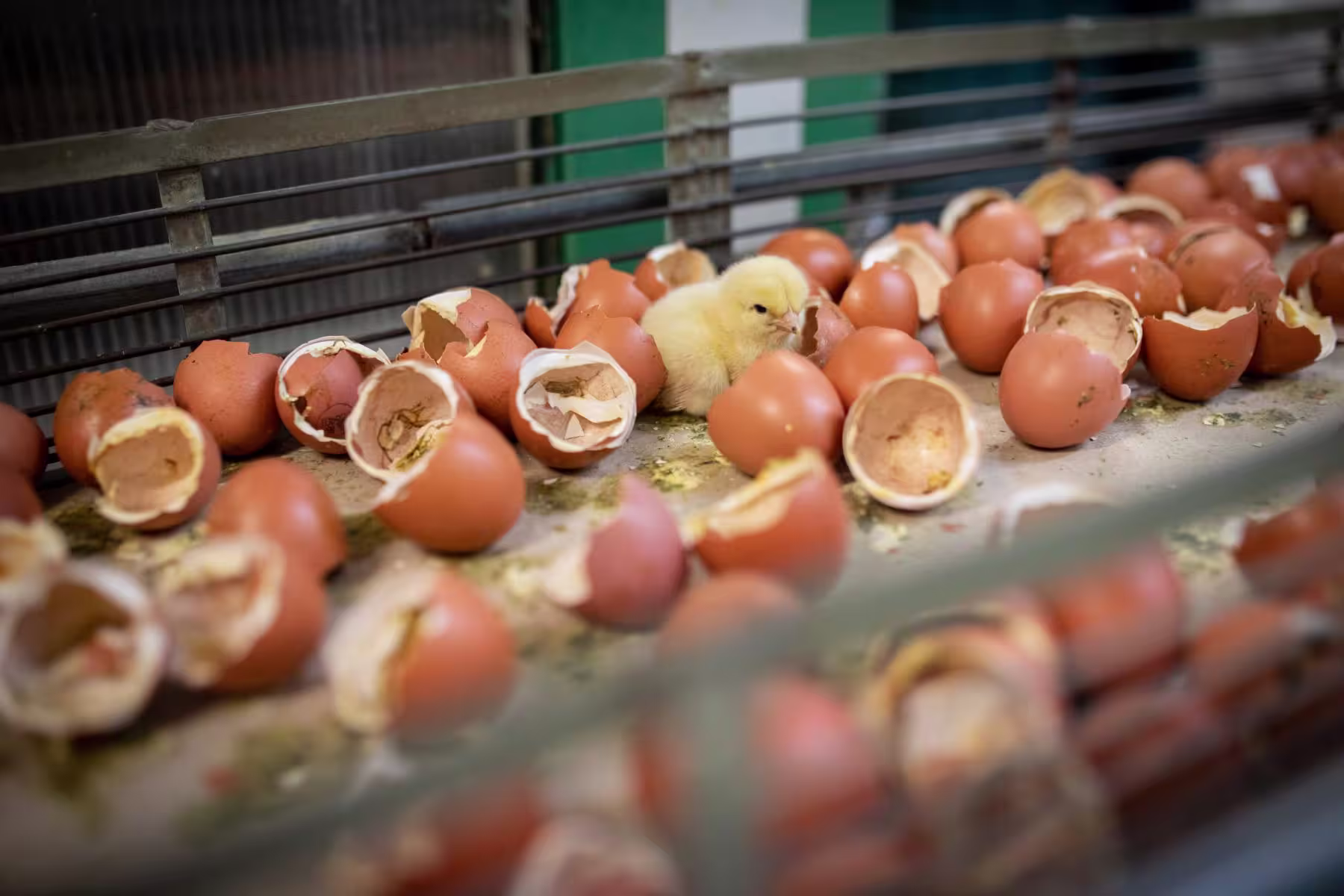 Industrial hatcheries are tightly controlled and highly mechanized production facilities designed to bring thousands of chicks into the world simultaneously. These environments are a far cry from what baby chickens would experience in the wild, where they would be protected by parents and allowed to explore their new homes. Instead, layer hens are born into a sterilized world of metal and heat lamps, where chicks huddle together in the absence of their parents— whom they’ll never get to meet.